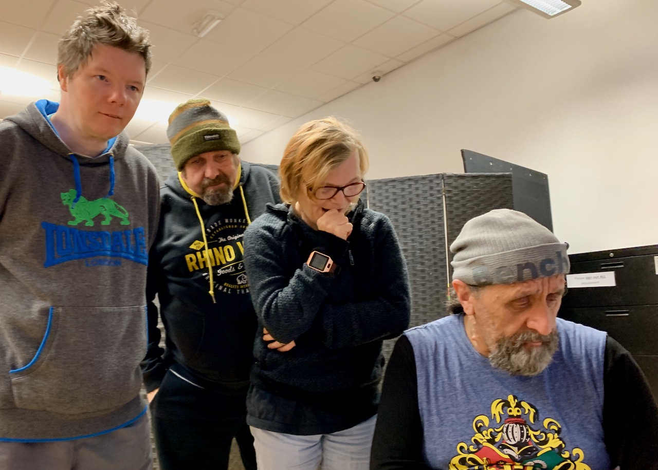 Andy Stafford, George Copeland, Debbie Bell, Andrew McLeod and Nick Heron have been members of The Lawnmowers Independent Theatre Company for 20 to 30 years. During that time, they’ve created many new productions, and given thousands of performances and workshops, throughout the UK and abroad. They are talented, creative theatre professionals, who dedicate their time to working with the Lawnmowers. Much of their work has been made with Geraldine Ling, who is a trustee since stepping down as artistic director a few years ago. I’ve been an admirer of the company for many years – they’re in Use or Ornament? – so I didn’t hesitate when Geraldine asked me to work with them on a project about growing older with learning difficulties.