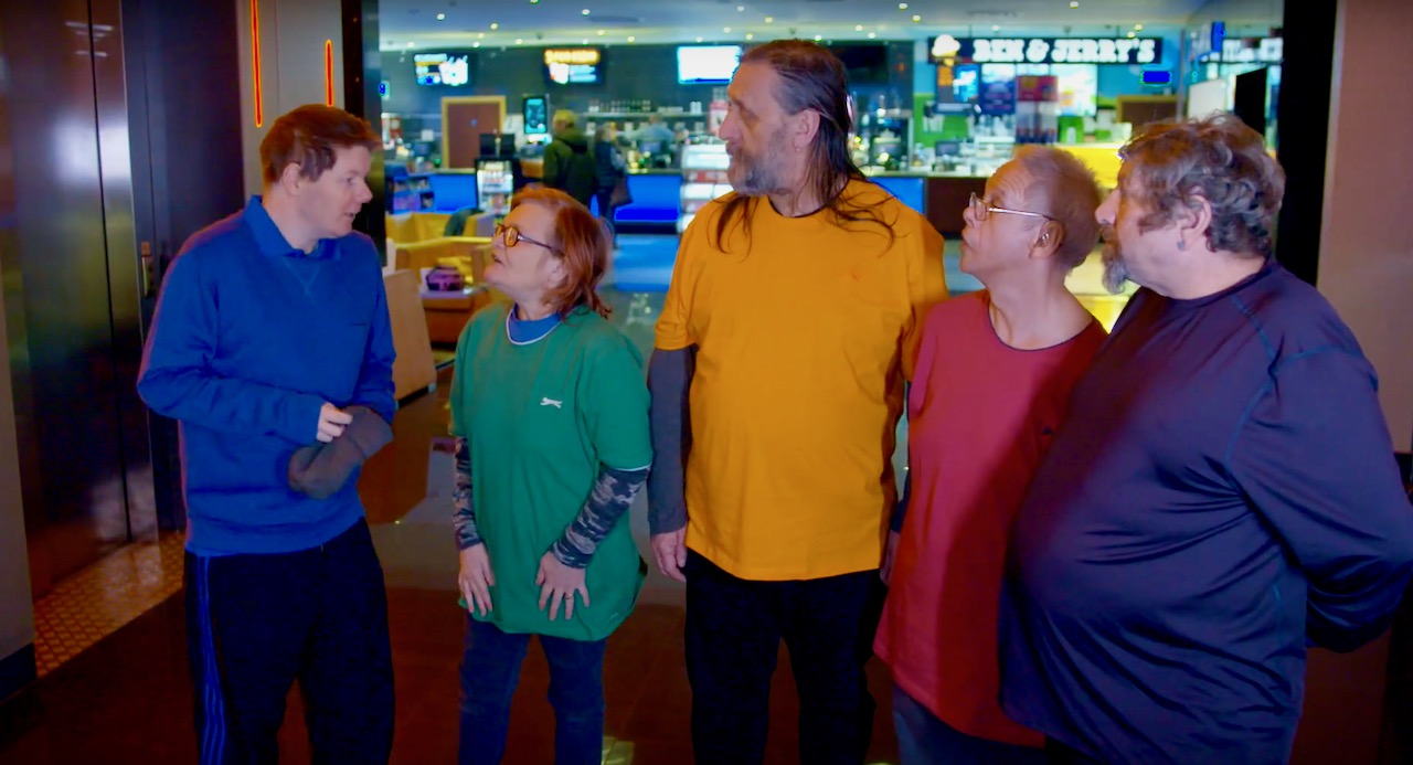 Ali Campbell worked with the cast to rewrite Elvis’ songs with music from Archie Brown and Bryan Dixon. When we decided that the play would work better as a film we turned to Bryan again and he filmed and edited it with Kristen Gibson. There are guest appearances by eight other performers, who mostly play people with similar roles to those they have in life. And around it all were all the other Lawnmowers members, staff and supporters, led by CEO, Dawn Redhead. The film, like all the best community art, belongs to everyone and no one. It is the singular creation of those who see a possibility into which they choose to invest their creativity.