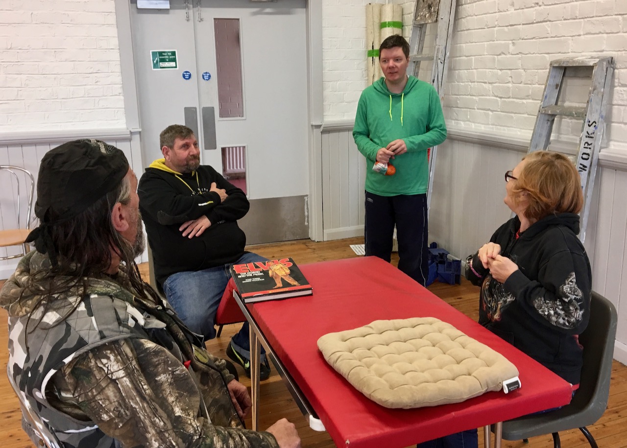 The issue is both political and personal. Political, in the sense that it’s an important new reality that requires profound change in policy and services for people with learning difficulties and personal because ageing is starting to affect each of the people involved in the project directly. The Lawnmowers wanted me to help them think about ageing, but none of us knew what that really meant when we gathered in October 2016 for our first session. I tried not to worry about it. I came with an open mind and a few ideas that I mostly kept to myself. We talked, drank tea, shared fruit and crisps, and began to get to know each other. The process was slow and gentle. We met once a month, on Saturdays, because everyone was busy. We did research into ageing, and how it affects people with learning difficulties. We tried out some sketch ideas. Once or twice we asked someone to come and talk to us about an aspect of the issue.