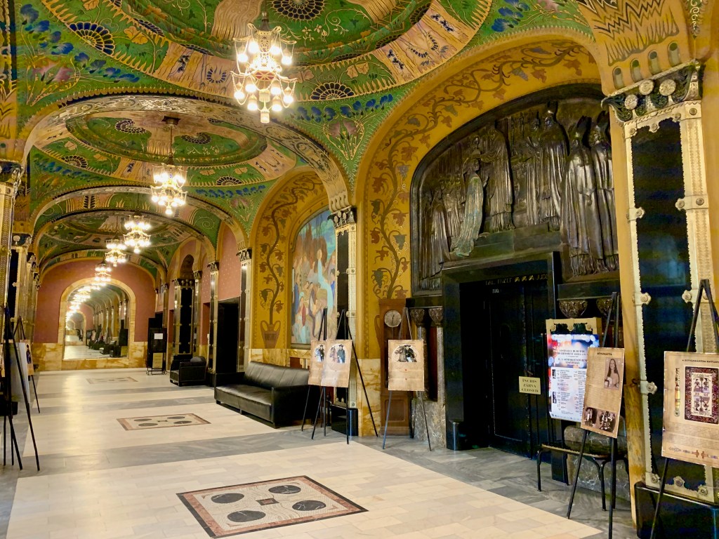 PS I took the photo at the top of this post in the Cultural Palace of Targu-Mures, which opened in 1912 within the Austro-Hungarian Empire; ten years later it had been transferred to Romania and the mythical extravagance of its decor acquired new meaning in a different culture. Success or failure? I’ve no idea.