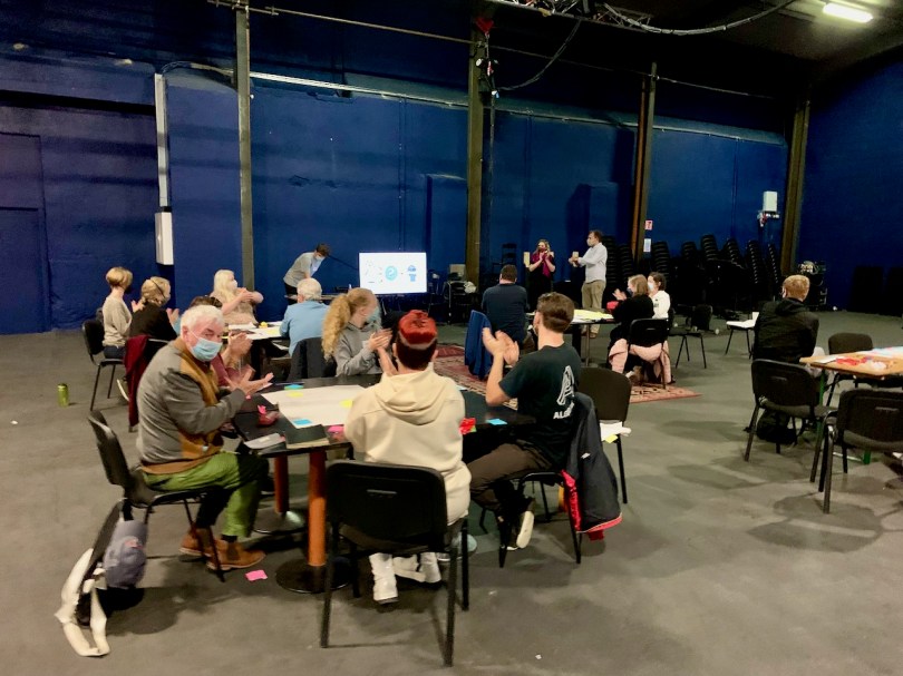 This photograph of the artists working on Irish National Opera’s Out of the Ordinary project was taken on 20 August 2021, at The Complex in Dublin. It was the first opportunity for the group to work together face-to-face since the project began last year, as part of Traction. As you can see, it is not possible to distinguish between the professional and non-professional artists in the group. Differences do exist, though. They are central to participatory art and can be deeply enriching. This is the first of three blog posts that explore what this language means and why it is being used as one of the foundation stones of the Traction programme.