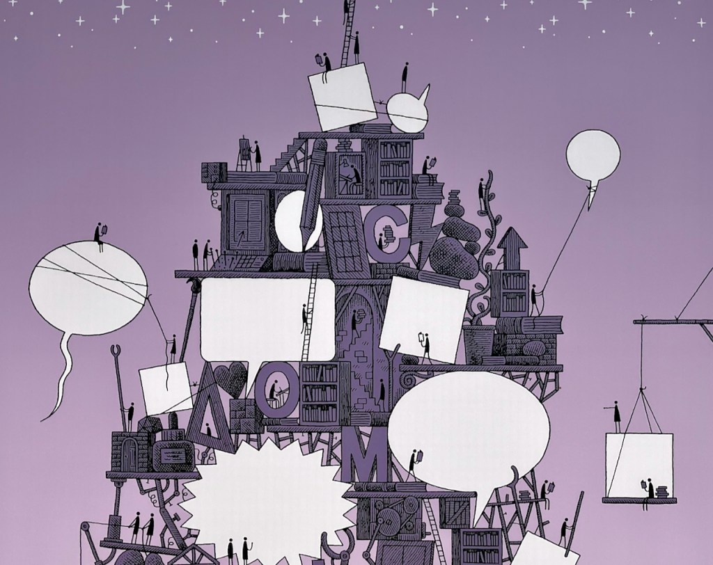 The photo shows part of a poster by Tom Gauld, one of 50 images produced to mark the 50th edition of the International Comics Festival of Angoulème and exhibited in 50 French railway stations in partnership with SNCF.