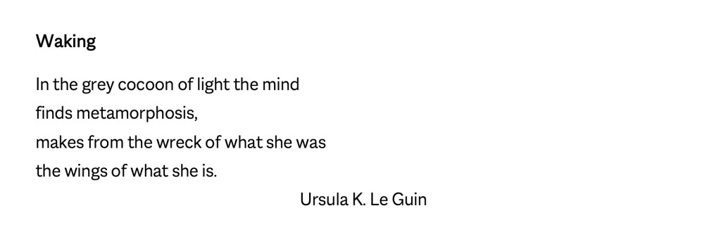 The suspension of work enforced by illness did allowed me to read more intensively and more widely than for many years, and to think too, more deeply I hope. I’ll start writing again this week, and I’m curious to see how I now inhabit a regenerated language. I still don’t know if A Selfless Art will have a public future beyond what I share here, but how dull (and terrifying) would it be if we knew what was coming? For now, I’m happy making new wings from the wreck of what was.